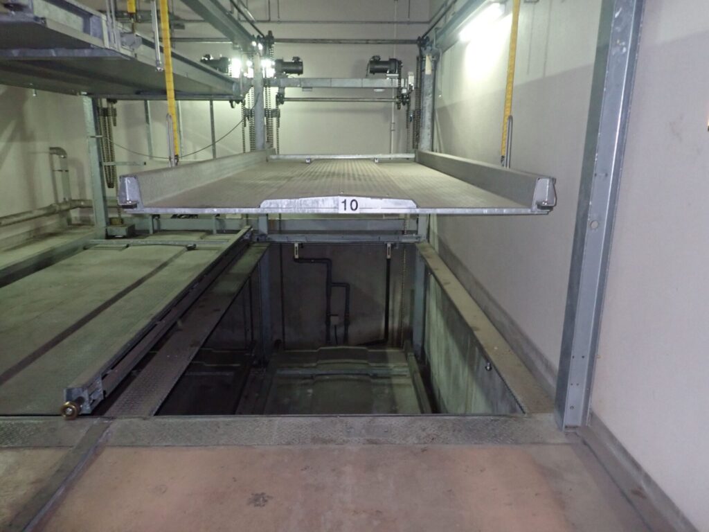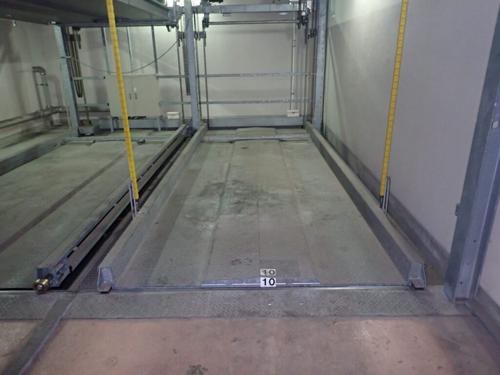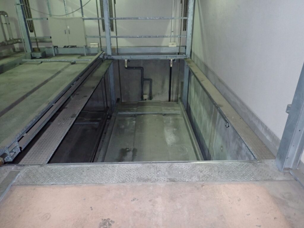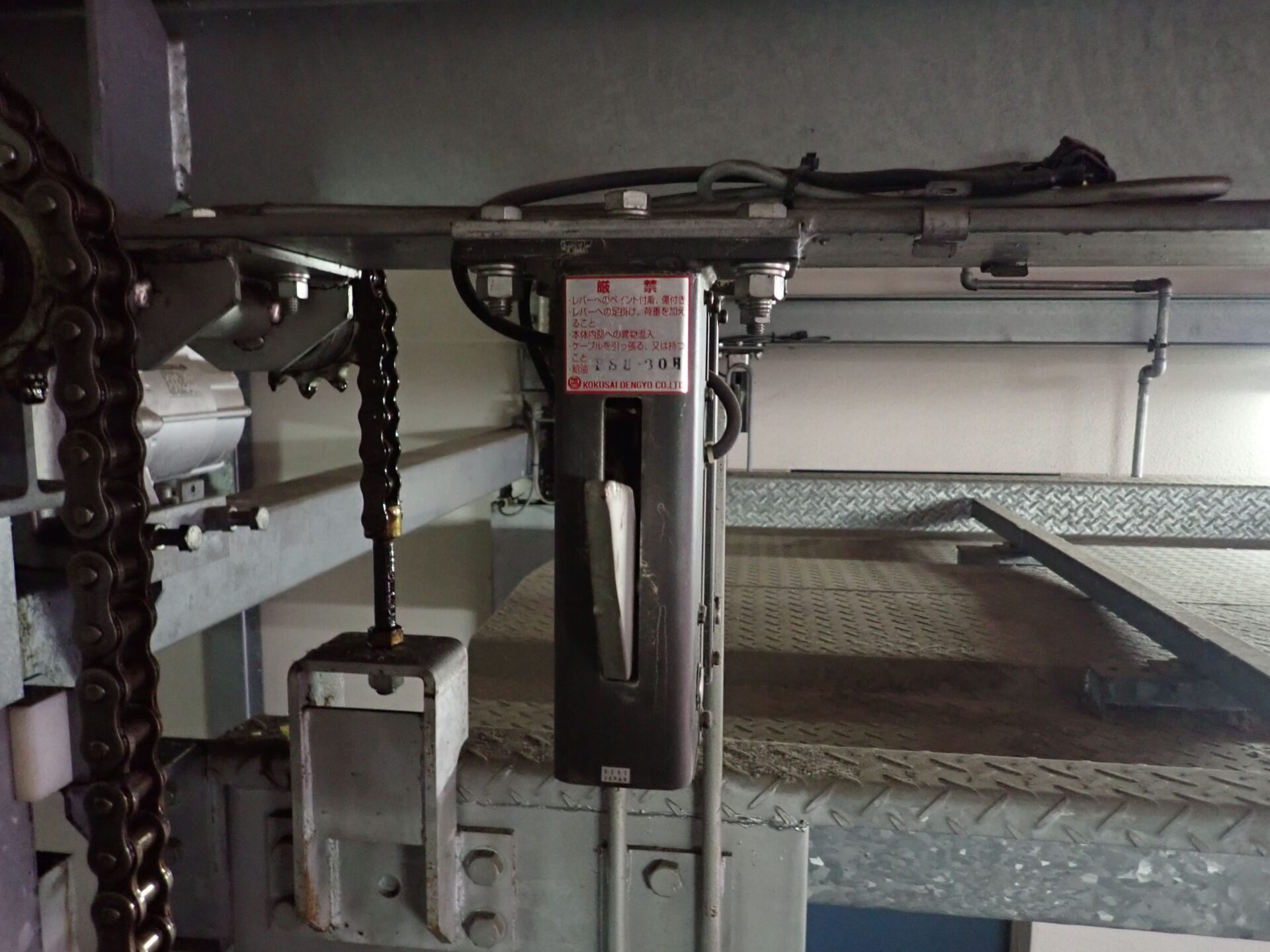 操作盤のスイッチ劣化による不作動、落下防止装置の内部ソレノイド劣化による昇降不良、昇降モーターのパワー不足によるブレーキ滑り、チェーンの固着によるパレット停止といった安全性を損なう故障が発生し、点検時の指摘となる。